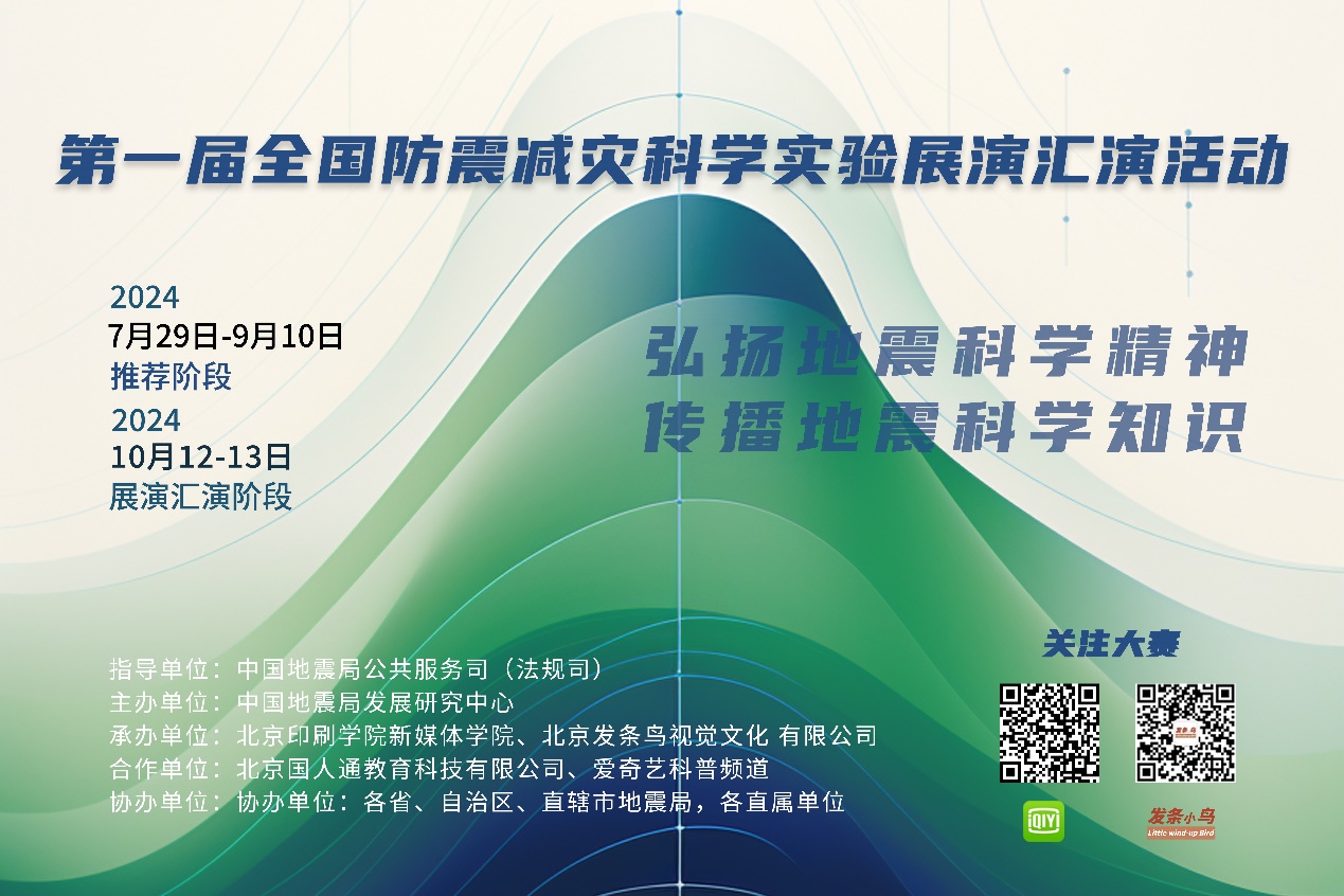 为普及地震科学知识,弘扬科学精神,营造热爱科学、崇尚科学的良好氛围。组织开展第一届全国防震减灾科学实验展演汇演活动。