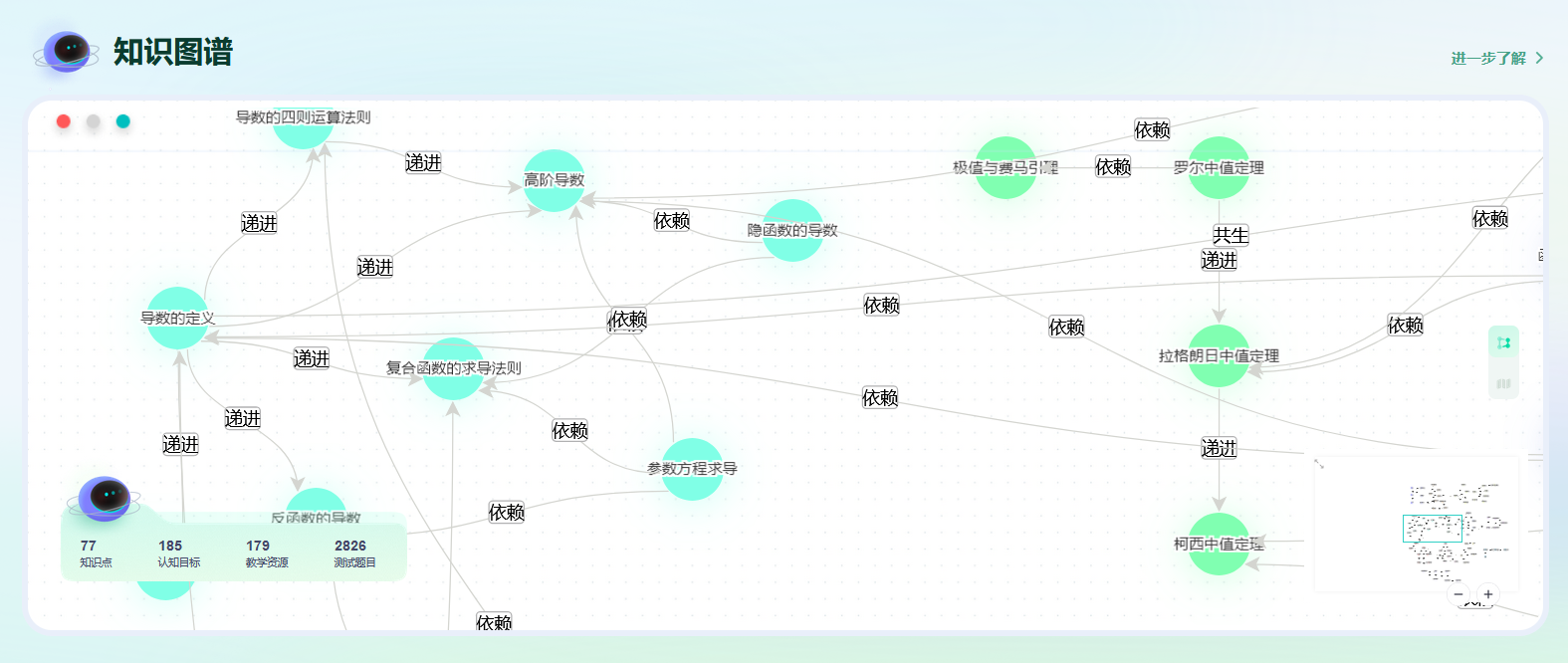 教育数字化是教育发展的未来愿景,而知识图谱是教育数字化转型的基础工作。在此背景下,工科数学分析信息大类课程团队在学院支持下,以新形态AI课程为抓手,切实推进数学教育教学改革建设,积极探索由传统课堂教学向数字化、智能化和个性化的新形态教学转型,建设了第一门基于知识图谱的新形态AI课程。