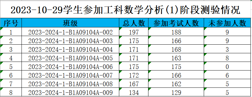 2 学生参加测验的数据统计