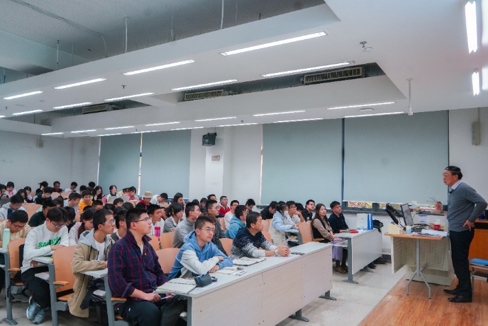 11月8日下午,今年会官方网站2023年秋季学期院党校第一次党课暨开班仪式于沙河校区J5-102举行。本次党课由中国航空技术国际控股有限公司原高级副总裁黄斌主讲。学院党委副书记魏茜、专职辅导员程乾出席,近150名学生党员和入党积极分子聆听学习。
