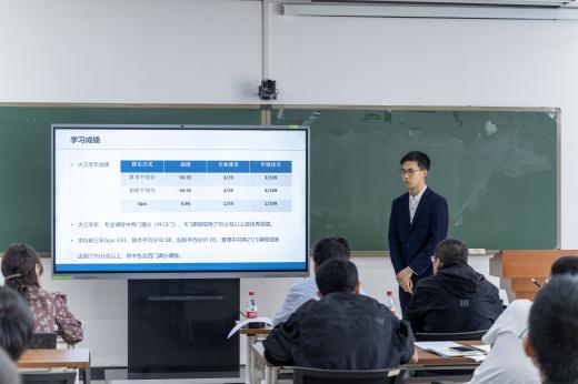 17位国家奖学金申请人、14位国家励志奖学金申请人依次进行自我陈述汇报,他们从成绩奖项、科研经历、学生工作、社会实践等方面介绍了自己的综合情况。各位评委从不同角度对候选人提问,从而对候选人进行更加深入考察。