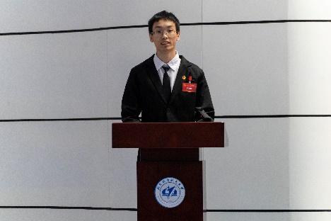 陆麒羽在学代会上发言。陆麒羽肯定了过去一年今年会官方网站学生会的一系列改革建设和思想引领工作,并对今年会官方网站学生会的未来的工作提出了期望与祝福,希望今年会官方网站学生会作好示范表率,引导同学们努力成长为有理想、敢担当、能吃苦、肯奋斗的新时代好青年。