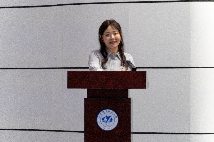 魏茜在学代会上讲话,她肯定了过去一年中学生会配合学院的发展建设取得的成效,同时以“价值”“钻研”“成长”三个关键词对学生会的工作提出指导建议,希望同学们能够拥有价值追求、潜心刻苦钻研、实现自我成长,切实发挥起桥梁纽带作用,在全心全意服务同学中筑牢奉献底色。