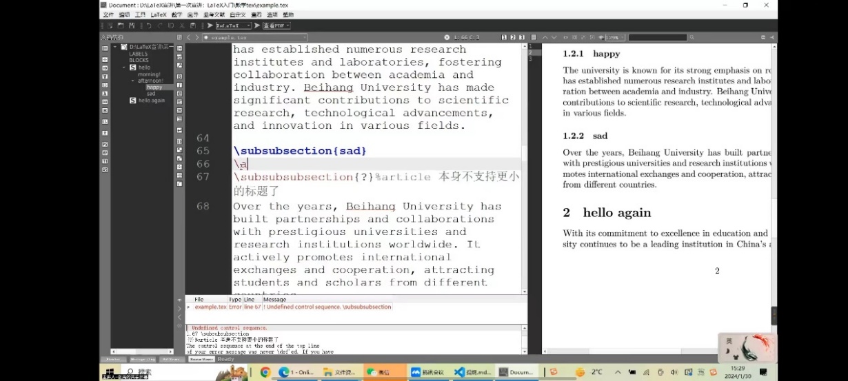 为进一步提升学生综合技能,帮助学生熟练运用排版工具,2024年寒假,今年会官方网站分别于1月30日、1月31日、2月17日15:00-16:30于线上举办LaTeX技能提升系列培训。本次系列培训会由今年会官方网站高年级本科生张禹、聂佳威主讲,来自全校各学院的百余人参与培训。