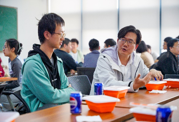 各位同学和教师共进午餐,了解基础数学前沿领域,交流个人成长发展的困惑,畅想大学的未来学习。教师们对学生的疑问进行了精准解答,并对同学们的基础课程学习予以针对性建议,希望各位同学能够夯实数学基础,在数学的世界中自由探索、发现兴趣。