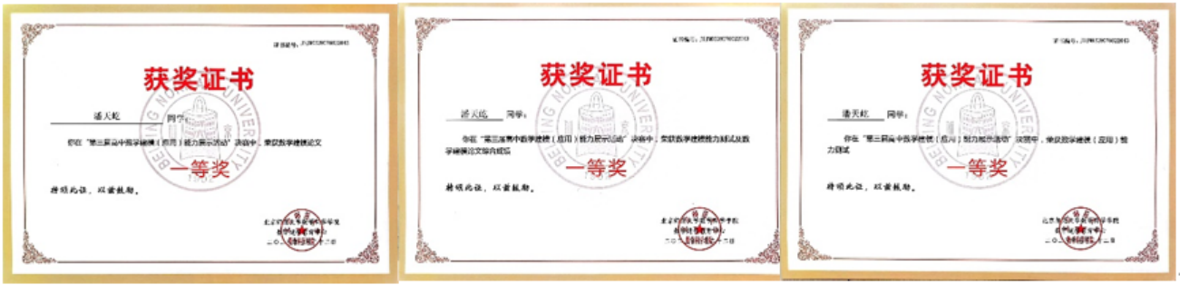 在近日结束的第三届高中数学建模(应用)能力展示活动中,今年会官方网站依托“英才计划”,由院长韩德仁教授牵头,指导北京市陈经纶中学学生潘天屹完成作品“智能机器人停车泊位最优路径的研究分析”,斩获数学建模(应用)能力测试一等奖、数学建模论文一等奖和综合成绩一等奖。