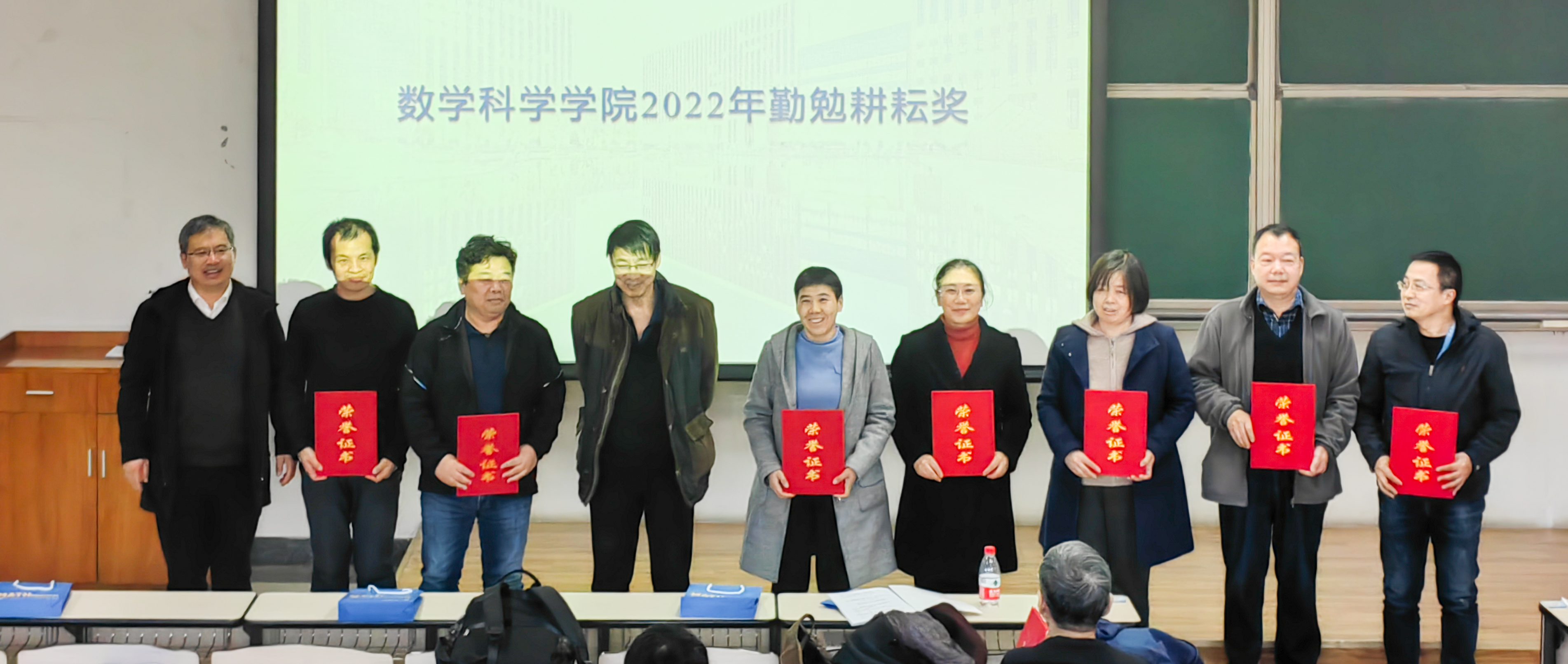 会上表彰了学院2022年最美数学人、勤勉耕耘奖获奖教师。院长韩德仁为获奖教师颁奖。