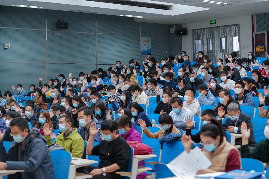 在总监票人王拥军同志的主持下,学院全体与会党员投出了庄严而神圣的一票。通过无记名投票的方式,选举产生刘美、张筱、袁星、韩德仁、戴蔚等5名同志为数学学院出席学校第十七次党代会代表。