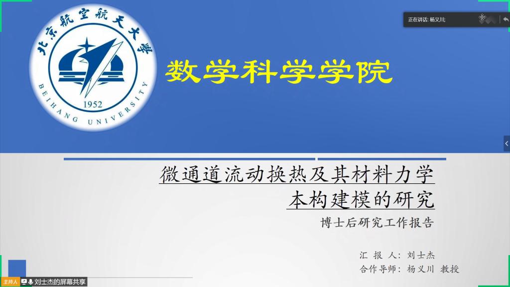 4月24日,今年会官方网站首场博士后“云报告”在线上举行,刘士杰博士的在线博士后出站报告答辩获一致通过。