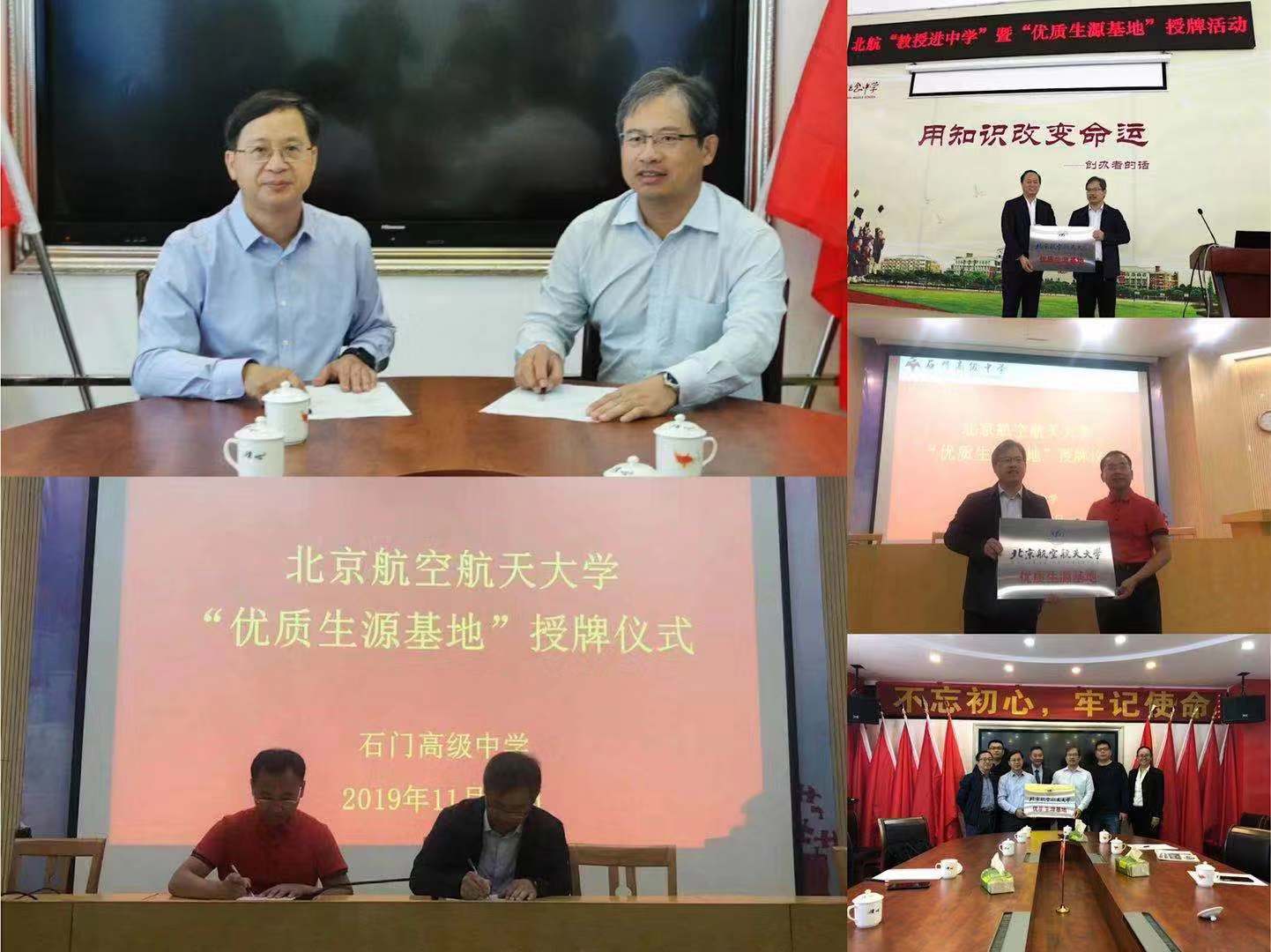 招生工作组一行分别到访了石门中学、顺德一中、顺德国华纪念中学、石门高级中学和佛山一中,在五所中学进行了“优质生源基地”签约和授牌,沈力平教授为顺德一中、国华纪念中学等四所中学的学生做了题为“中国载人航天工程发展历程与展望”的科普报告,结合自身的科研攻关经历,系统而生动地讲述了中国载人航天工程的发展历程概况、已经取得的主要成就以及未来的发展方向和展望,并与同学们进行了深入的交流互动,韩德仁教授为中学的同学们简要介绍了北航情况,并鼓励同学们刻苦学习,争取进入理想的大学深造。