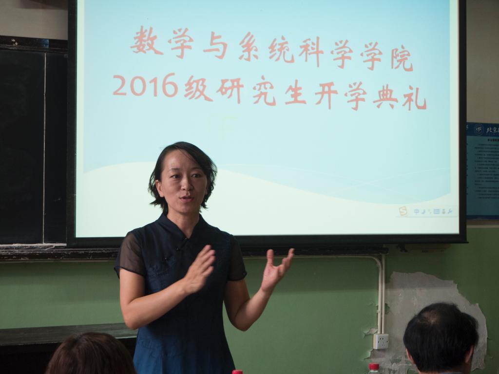 李红捷书记首先致辞,她代表数学学院对全体新生表示欢迎,并谈到了北航的迅速发展以及要成为世界一流大学的目标,同时叮嘱同学们要将自身的发展与北航的发展相结合并为数学学院注入新的活力,最后祝福同学们在研究生阶段实现自身的理想与目标、成才后共同建设北航。随后,佘志坤副院长对学院的组织结构、师资力量、发展现状、特色研究、科研成果、研究生招生与培养等六个方面做了详细解读,让同学们对学院的情况有了更深刻的认识。紧接着,姜鑫老师表达了对大家的欢迎,并幽默地提醒大家,虽然进入北航深造前途一片光明,但是要由Bachelor转型到Master or Doctor,需要静下心来,做一些专业的事情,做到炉火纯青,希望同学们都能在北航实现自己的人生价值。