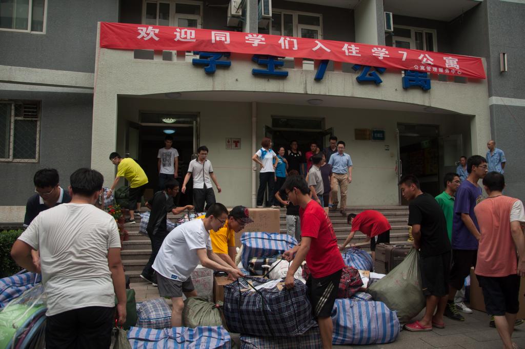 本次搬迁工作受到了学校领导,学院领导的高度重视。学院副书记王菲老师,12级辅导员张文浩早7点到沙河校区行李装载现场组织搬迁工作。我院女生于上午9点许顺利完成行李装车和人数清点工作。上午10许,我院12级女生到达学院路校区。我院高年级志愿者和事先到达学院路校区的12级男生志愿者齐心协力,快捷、有序地帮助女生完成了行李的上楼安置。下午3点许,我院男生在沙河校区准时完成行李装车和人数清点。4点许,所有男生到达学院路,6点许,所有同学的宿舍搬迁顺利完成。