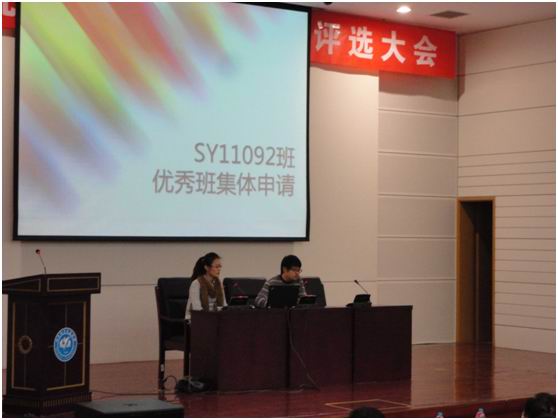 2012年11月27日下午,jinnianhui今年会二零一二年度优秀研究生班集体评选大会在新主楼第二报告厅举行。我院SY11092班作为学院代表参加评选。