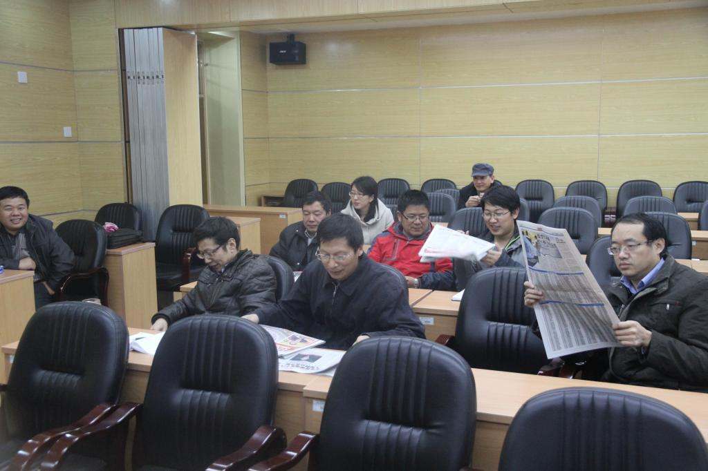 为响应中央关于掀起学习十八大精神热潮的号召,切实完成学习好、领会好、贯彻好党的十八大精神这一首要政治任务,11月27日,数学系党支部与应用数学系党支部联合举行了集体学习会,领会、讨论如何全面贯彻落实十八大精神。
