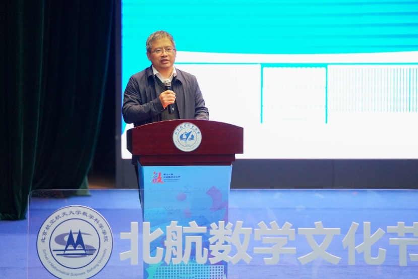 席南华、吕卫锋、韩德仁、袁星、沈良明、王钰荃共同为第十一届北航数学文化节揭幕。伴随着绚丽的光影与激昂的音乐,2024年“与你游于数”数学文化节正式开幕。