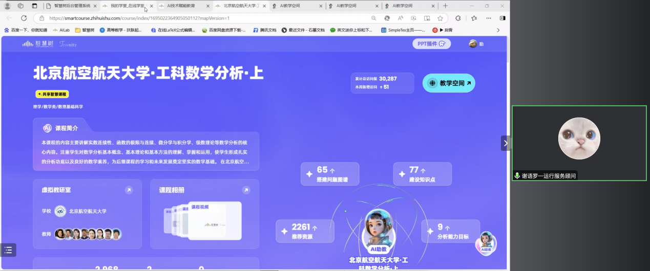 通过智慧树平台的AI课程应用,教师能够更高效地管理课程、分析学生学习情况,而学生能够获得更加个性化、便捷的学习体验。项目成员高校将以北航《工科数学分析AI课程》为元图谱,进一步探索如何建设适合于西部高校的工科数学分析新形态课程,并开展教学应用。