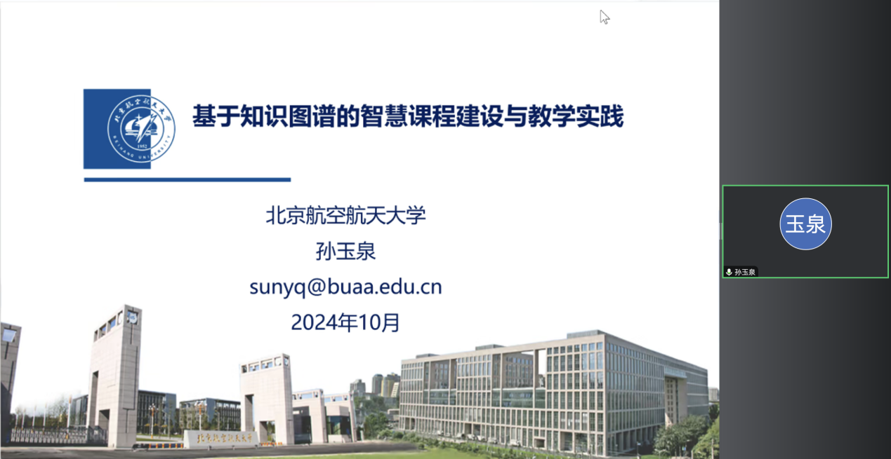 会上,jinnianhui今年会孙玉泉老师以“基于知识图谱的智慧课程建设与教学实践”为题进行分享,从工科数学分析AI课程建设背景,到AI课程的建设步骤,并结合本校AI课程4个学期的运行经验,分享汇报AI技术在教学应用中的探索、应用与实践。