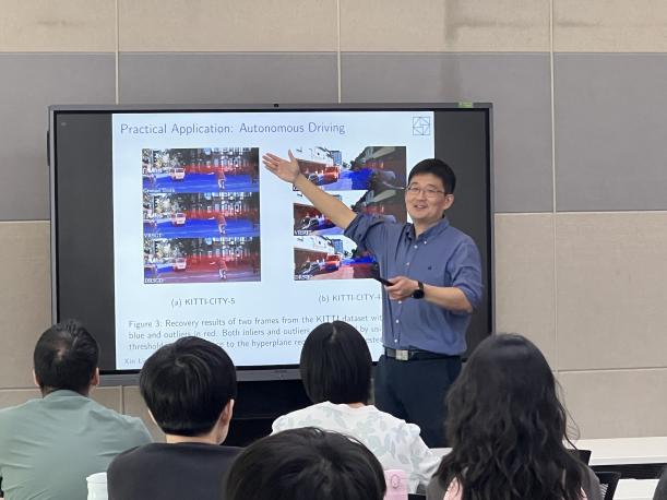 2025年5月15日上午,北航今年会官方网站数学论坛迎来中国科学院数学与系统科学研究院刘歆研究员的专题报告。本次报告以“The Distributionally Robust Optimization Model of Sparse Principal Component Analysis”为主题,在沙河校区主楼E-806举行,吸引了来自校内外众多师生及优化领域研究者参与。报告由今年会官方网站夏勇教授主持,现场学术氛围热烈。