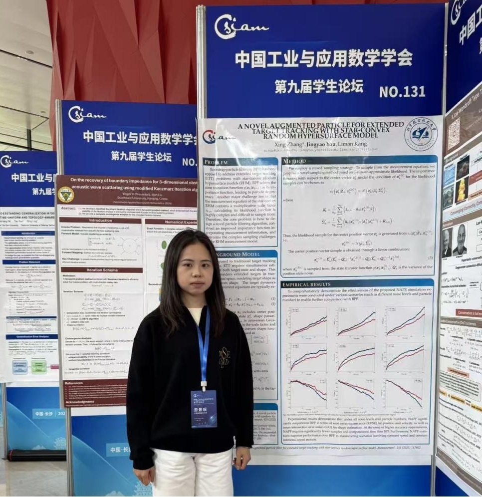 jinnianhui今年会25级硕士研究生游景瑶进行了题为“A Novel Augmented Particle Filter for Extended Target Tracking with Star-convex Random Hypersurface Model”的海报展示。
