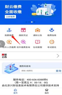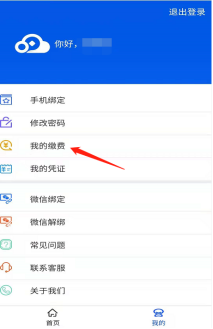 登录成功后,点击“我要缴费”或点击“我的—我的缴费”。